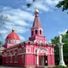 La Iglesia de la Ascensión muestra elementos arquitectónicos bizantinos y rusos con una cúpula central, cuatro cupulas menores y paredes de ladrillo decorativas.