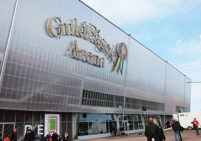 El Guldfågeln Arena presenta una superficie híbrida de césped de 105 por 68 metros y contiene cuatro gradas con capacidad total de 12.500 espectadores.