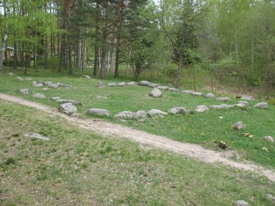 El lugar contiene una formación rectangular de piedras y dos piedras rúnicas, ubicadas cerca del lago Mälaren en la región de Estocolmo.
