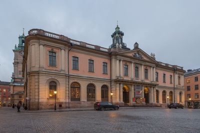 Construido en 1776, esta estructura funcionó inicialmente como centro principal de operaciones financieras y comerciales en Estocolmo.