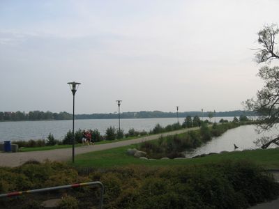 Un sendero de 4.5 kilómetros para caminar y andar en bicicleta rodea todo el lago, conectando múltiples puntos de acceso e instalaciones recreativas.