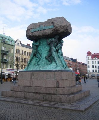 Arbetets ära, Escultura de bronce y granito en Möllevångstorget, Malmö, Suecia