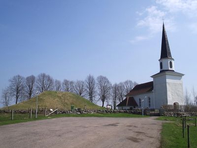 Kung Ranes hög, schwedischer prähistorischer Hügel neben der Kirche von Flistad