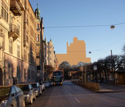 El sitio está ubicado centralmente en Östermalm con buen acceso por transporte público y rutas a pie. Los visitantes deben saber que el área hoy consiste principalmente en un parque, ya que el edificio original nunca se construyó.