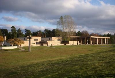 El arquitecto Gunnar Asplund diseñó la Capilla de la Santa Cruz, que inauguró sus puertas en 1940 como parte del complejo del cementerio Skogskyrkogården.