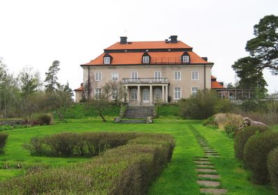 El parque que rodea el castillo sigue un estilo de jardín de paisaje inglés del siglo diecinueve temprano, mezclando el edificio con el entorno natural del lago cercano. Este tipo de diseño de jardín era poco común para las casas señoriales suecas de esa época.