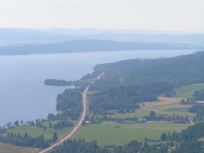 El lago Övre Fryken se extiende 80 kilómetros por el paisaje de Värmland, alcanzando 3 kilómetros de ancho y 93 metros de profundidad.