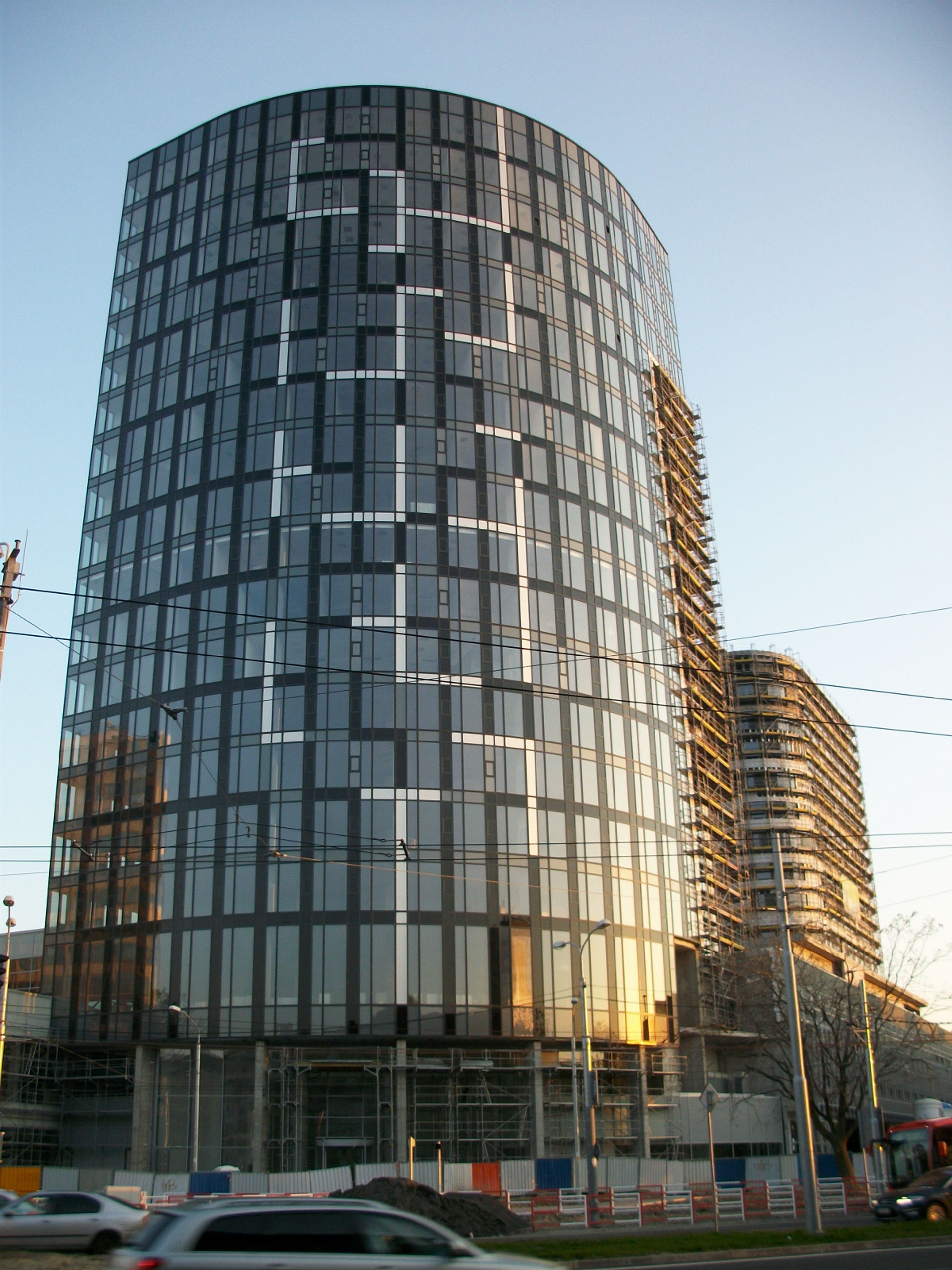 El centro comercial ocupa varios pisos con tiendas de moda, establecimientos de electrónica, un supermercado y restaurantes en el distrito Metodova.