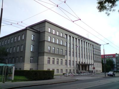 El edificio representa las tendencias arquitectónicas de Checoslovaquia en los años 1930, combinando diseño institucional tradicional con principios racionalistas en su estructura.