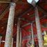 El templo incorpora columnas de teca con mosaicos de vidrio y un Chedi que cambia de forma rectangular a redonda en su parte superior.