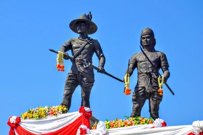Las estatuas de bronce y cobre se alzan en los terrenos del templo, representando a dos importantes líderes militares de la historia tailandesa.