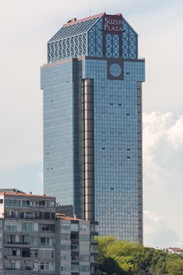 Plaza Süzer es un rascacielos moderno de 34 pisos ubicado en la zona de Harbiye en el distrito de Şişli de Estambul. La estructura combina espacios de oficinas con un hotel de lujo, mostrando la mezcla de funciones comerciales y de hospitalidad típicas del centro urbano.