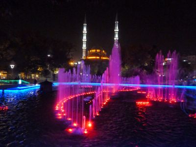 La Mezquita Hacıveyiszade se alza con dos minaretes de 78 metros de altura y puede albergar a 4.500 fieles en su sala principal de oración point.