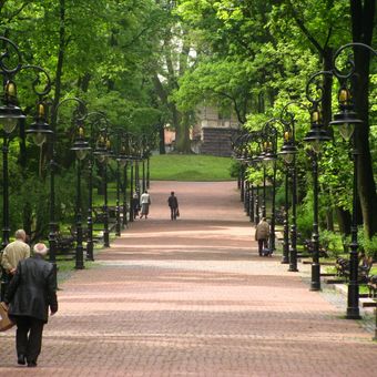 El Parque Ivan Franko ocupa 11.6 hectáreas frente al edificio principal de la Universidad Nacional Ivan Franko con senderos y árboles centenarios.