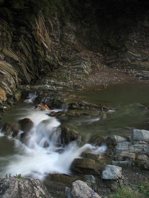 Kosivskyi Huk, Cascada montañosa cerca de Kosiv, Ucrania.