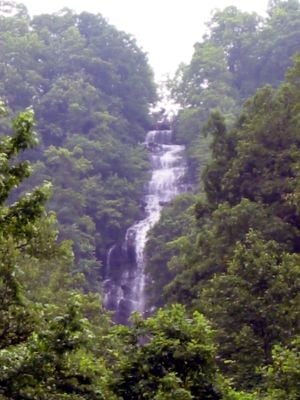 El agua cae 222 metros en múltiples niveles de formaciones rocosas, creando una corriente continua que fluye por el denso bosque del norte de Georgia.