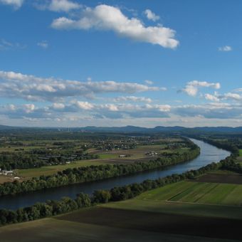 El río Connecticut es un sistema fluvial en Nueva Inglaterra que atraviesa cuatro estados a lo largo de 655 kilómetros (407 millas) entre la frontera canadiense y el Long Island Sound. La cuenca incluye valles amplios con colinas arboladas y planicies agrícolas planas en los tramos medios e inferiores.
