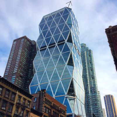 La Torre Hearst se eleva 182 metros con 46 pisos, presentando un patrón geométrico de acero en su exterior de vidrio en 300 West 57th Street.