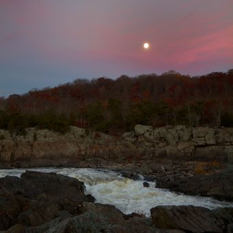 El parque de 320 hectáreas contiene una sección del río Potomac que fluye entre formaciones rocosas, creando cascadas naturales y la garganta Mather.