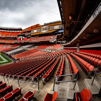 El estadio de los Cleveland Browns se encuentra junto al lago Erie con 71.516 asientos, pantallas de video grandes y un sistema de sonido moderno.