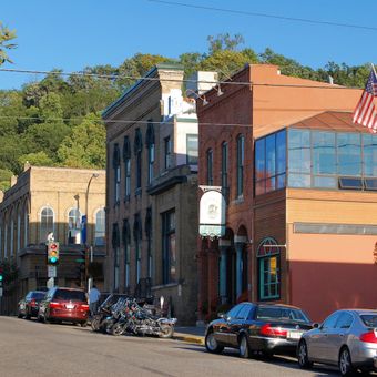 Hudson se desempeña como centro administrativo junto al río St. Croix, con oficinas gubernamentales, zonas residenciales y distritos comerciales en sus límites municipales.