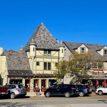 La Plaza White Deer muestra edificios de los años 1920 y 1930 que combinan elementos de diseño alemán e inglés característicos de la zona. Estos estilos arquitectónicos definen la apariencia del lugar tal como lo ven los visitantes.