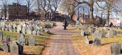 El cementerio, fundado en 1659, sirvió como posición de artillería británica durante la Batalla de Bunker Hill en 1775, disparando contra Charlestown.