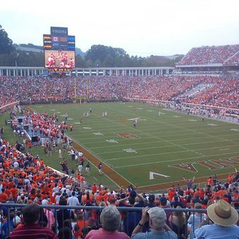 El Estadio Scott alberga 61.500 asientos y ofrece vistas a las Montañas Blue Ridge, con el Monte Monticello visible desde las gradas.