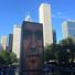 Las pantallas digitales muestran rostros rotatorios de residentes de Chicago, seleccionados mediante colaboración con setenta y cinco organizaciones comunitarias.