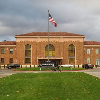 La estacion San Jose Diridon es una estacion ferroviaria en San Jose construida en estilos arquitectonicos Revival Renacentista y Revival Mediterraneo. El edificio sigue en uso activo y presenta ventanas arqueadas, trabajo decorativo en piedra y elementos tradicionales de su periodo de construccion original.