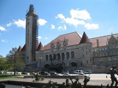 Aloe Plaza es un parque urbano de 3,35 hectáreas ubicado entre las calles Chestnut y Market en el centro de St. Louis con espacios verdes y senderos peatonales. El sitio se conecta directamente con Union Station y sirve como espacio de transición entre la estación y los barrios circundantes.