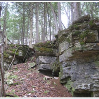 Los Bayshore Blufflands se extienden por 11 kilómetros a lo largo del Escarpe del Niágara, con acantilados de carbonato que se elevan 60 metros.