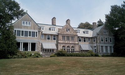 La propiedad de 13 hectáreas presenta una mansión de 45 habitaciones rodeada de jardines diseñados con vistas a la bahía Narragansett.