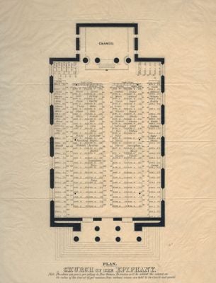 Church of the Epiphany es un edificio eclesiástico de estilo Renacimiento Griego que se extiende por toda una manzana de la ciudad, con columnas corintias, diseño simétrico y construcción en piedra blanca. La estructura muestra proporcionadas clásicas y detalles arquitectónicos formales en toda su fachada.