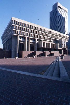 La plaza se construyó entre 1963 y 1968 en el antiguo emplazamiento de Scollay Square, según los diseños del estudio de arquitectura Kallmann McKinnell & Knowles.