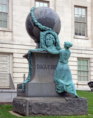 Creado por el escultor Jonathan Scott Hartley en 1890, la Asociación de Fotógrafos Profesionales de América inició este monumento para honrar al inventor del daguerrotipo.