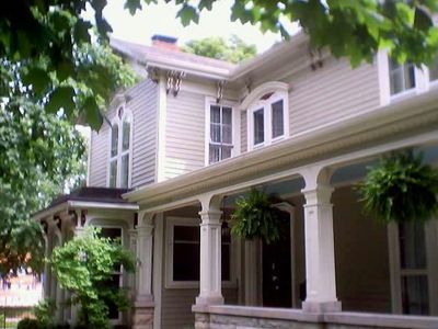 La propiedad representa la arquitectura residencial del siglo XIX e incluye el apellido familiar tallado en la piedra para carruajes cerca del porche norte.