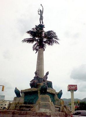 India de El Paraíso es una columna conmemorativa de bronce en el centro de Caracas con tres figuras femeninas que representan a Venezuela, Colombia y Ecuador. Una mujer indígena sosteniendo una antorcha corona la estructura, rodeada de hojas de palma de metal.