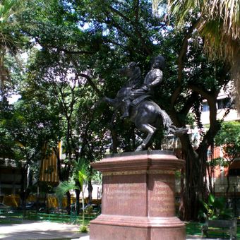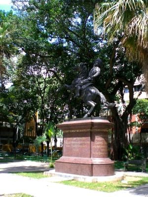 La Plaza Páez alberga una estatua ecuestre de bronce creada por el escultor Eloy Palacios, rodeada de fuentes y espacios verdes.