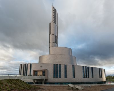 La Catedral de las Luces del Norte es una iglesia parroquial moderna en Alta que se caracteriza por su forma circular revestida de titanio. El campanario en espiral se eleva desde la base de hormigón y crea una silueta distintiva.