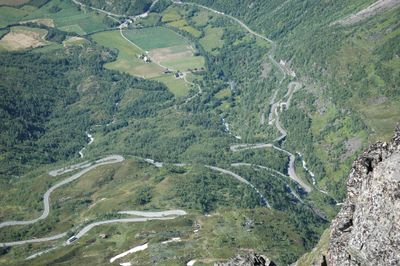 La Geiranger Road es un paso montañoso en Møre og Romsdal que discurre desde el lago Langvatnet hasta la salida de la carretera E136 cerca de Åndalsnes, cruzando terreno montañoso escarpado con múltiples curvas cerradas. La sección Eagle Road asciende alrededor de 620 metros a través de 11 curvas de horquilla mientras ofrece vistas de cascadas y el fiordo de Geirangerfjord debajo.