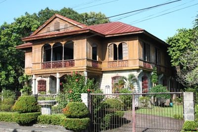 La mansión incorpora troncos de madera local de Mindoro en sus cimientos, combinando artesanía filipina con influencias arquitectónicas europeas del período.