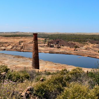 Sao Domingos Mine es un sitio de extracción de cobre en Corte do Pinto que cuenta con edificios mineros, estructuras de extracción y cuencas de agua teñidas de rojo por el alto contenido de hierro en el paisaje excavado. En todo el terreno hay estructuras abandonadas que atestiguan operaciones mineras pasadas.