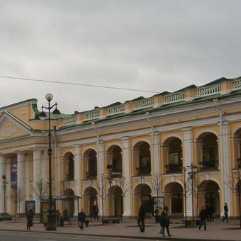 La construcción de este edificio comercial comenzó en 1757 bajo la dirección del arquitecto Bartolomeo Rastrelli, quien creó el diseño inicial. Jean-Baptiste Vallin de la Mothe asumió el proyecto después y lo completó en 1785 con un estilo neoclásico.