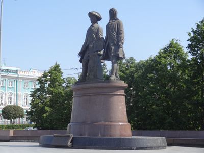 Inaugurado en 2002, este monumento conmemora a los fundadores que establecieron Ekaterimburgo como centro metalúrgico en 1723 durante la iniciativa de industrialización de Pedro el Grande.