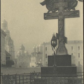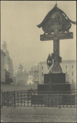Monument to Grand Duke Sergey Alexandrovich, Cruz conmemorativa cerca de la Torre Nikolskaya en Moscú, Rusia